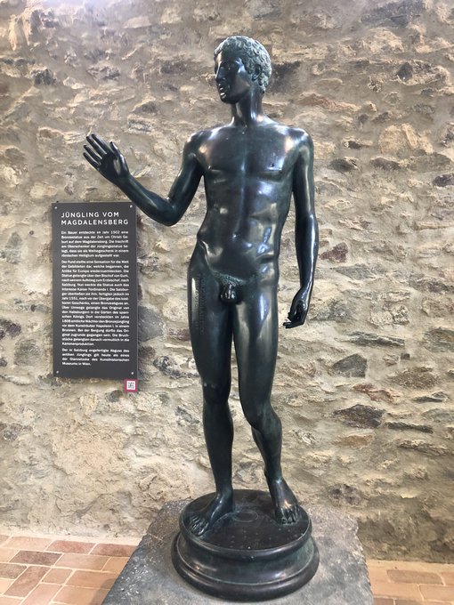 But a farmer, digging in a nearby field in 1502, uncovered this lifesize bronze statue dubbed the Youth of Magdalensburg. (This is a copy, the original is now believe to have been lost over a century ago.)