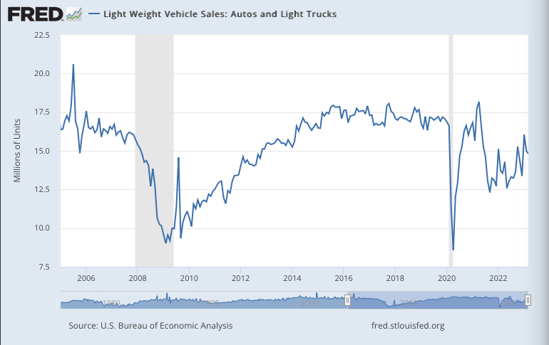 Auto sales declined in -1.2% m/m March to a fairly subdued annual rate of 14.8 million per year, up +9.8% from a year ago. For Q1 as a whole, auto sales rose +6.6% q/q, up +8.2% from a year ago.