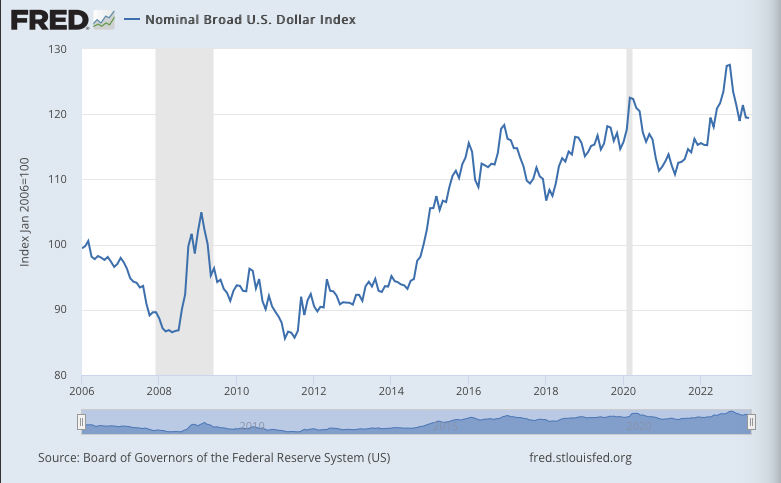 Real exports of goods and services (adjusted for inflation) rose +1.2% q/q in 1Q23, up +7.1% from the same period a year before, above pre-Covid levels.